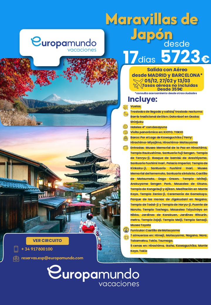 Maravillas de Japón. Salida con Aéreos desde Madrid y Barcelona