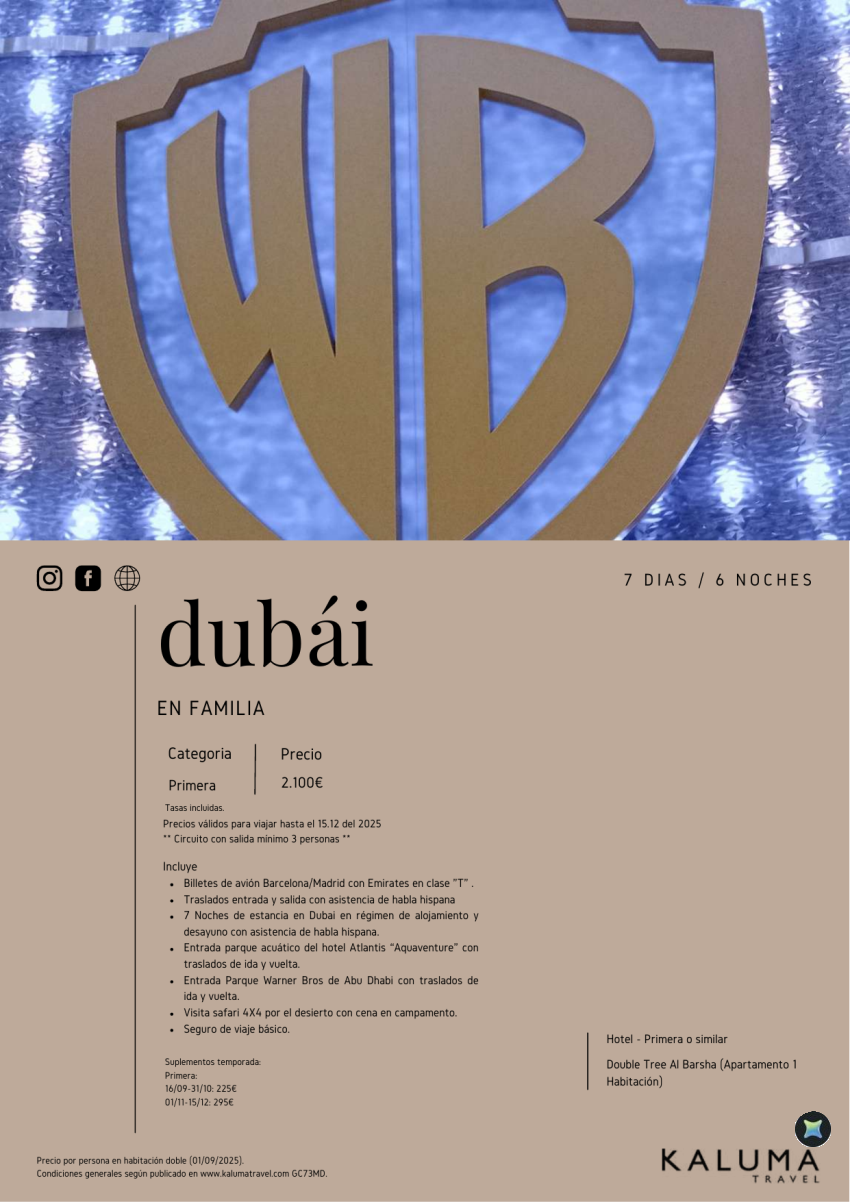Dubai en Familia 7 noches - Salidas Diarias *con Entradas a los Parques* hasta Diciembre desde 2.395 €